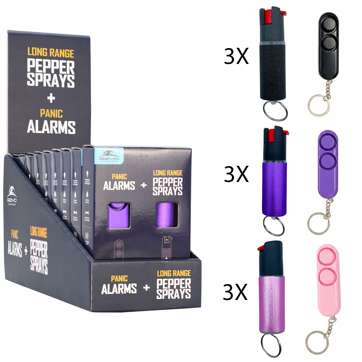 9 PC Security Personal Alarm and Pepper Spray Combo with Counter Display – Assorted Colors