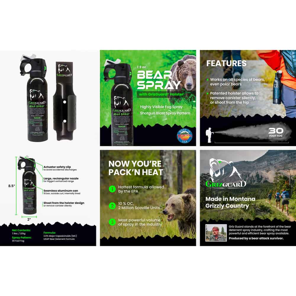 - Sporting Goods Stores: Appeal to the safety-conscious customer base by featuring GrizGuard Bear Spray in sporting goods stores. This product caters not only to avid hikers and campers but also to hunters and those exploring wildlife-rich areas.