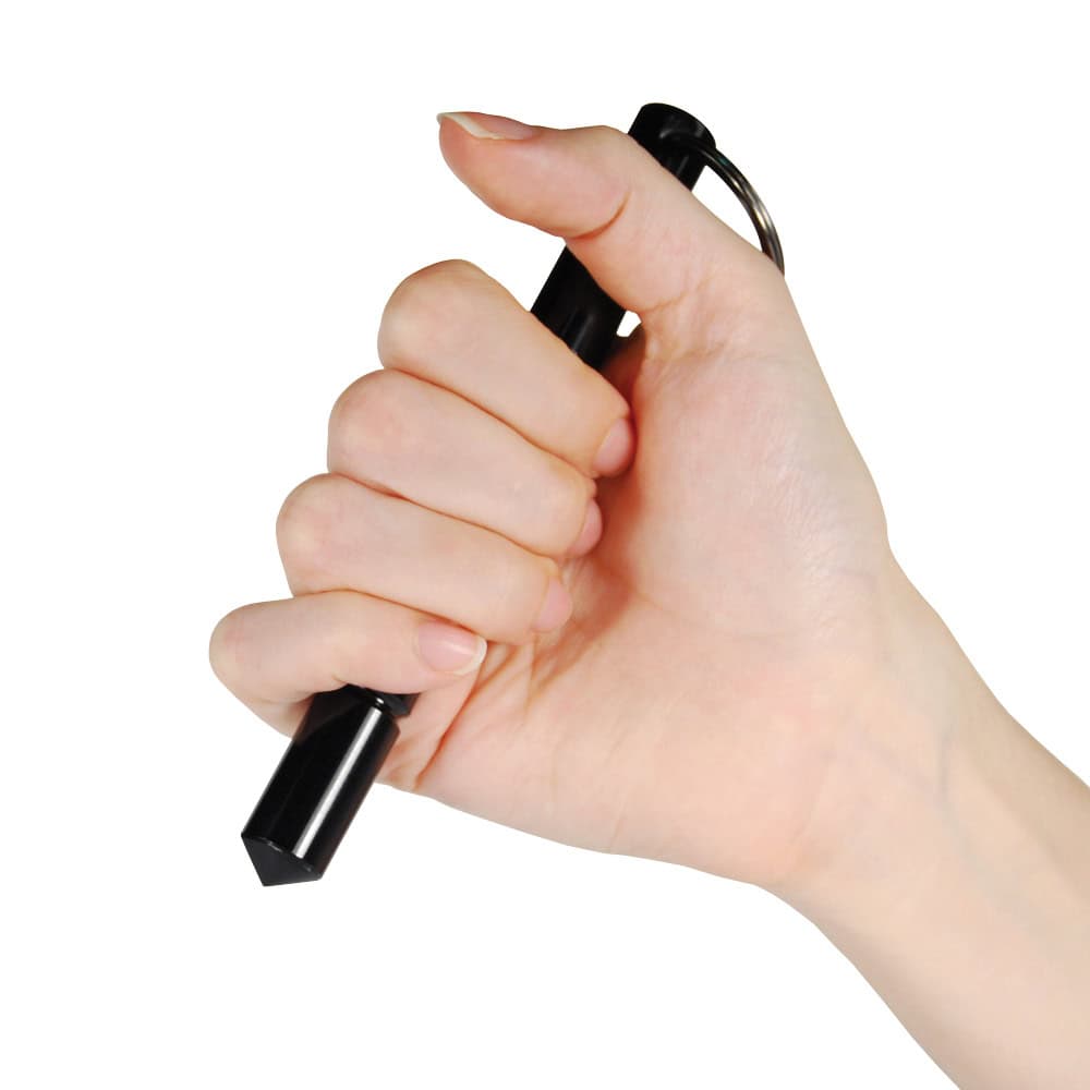 The ridges aren’t just for looks. They give you a secure grip even if your hands are sweaty or wet. The tip is slightly elevated and thicker than the shaft, which focuses your impact force onto a smaller surface area. Physics tells us that force divided by area equals pressure – less area means more pressure, and more pressure means more effect. The solid steel keyring is heavy-duty, not the flimsy split rings that break after two weeks.