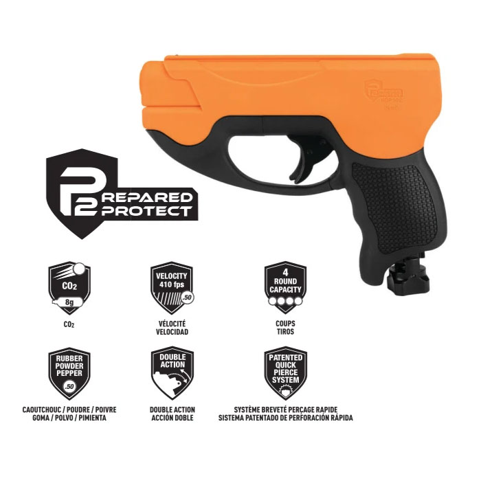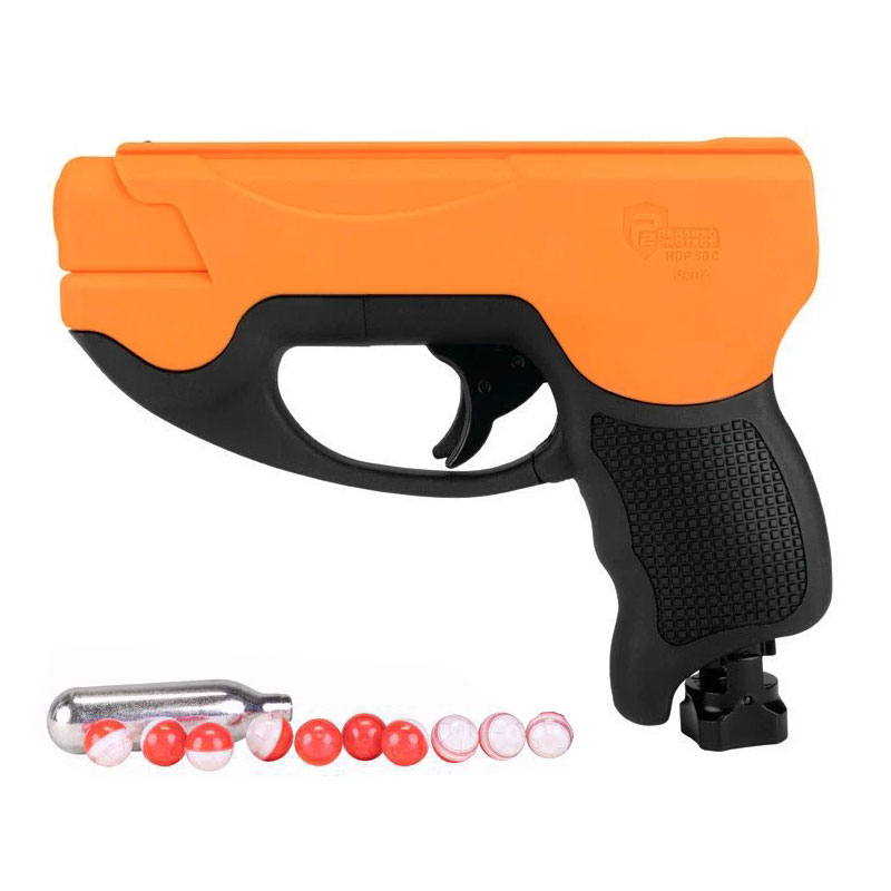 The P2P HDP 50 Compact Gen2 .50 Cal Pepper Pistol is a less lethal concealed carry gun. It shoots hard rubber or 50 caliber pepper balls up to 410 feet per second
