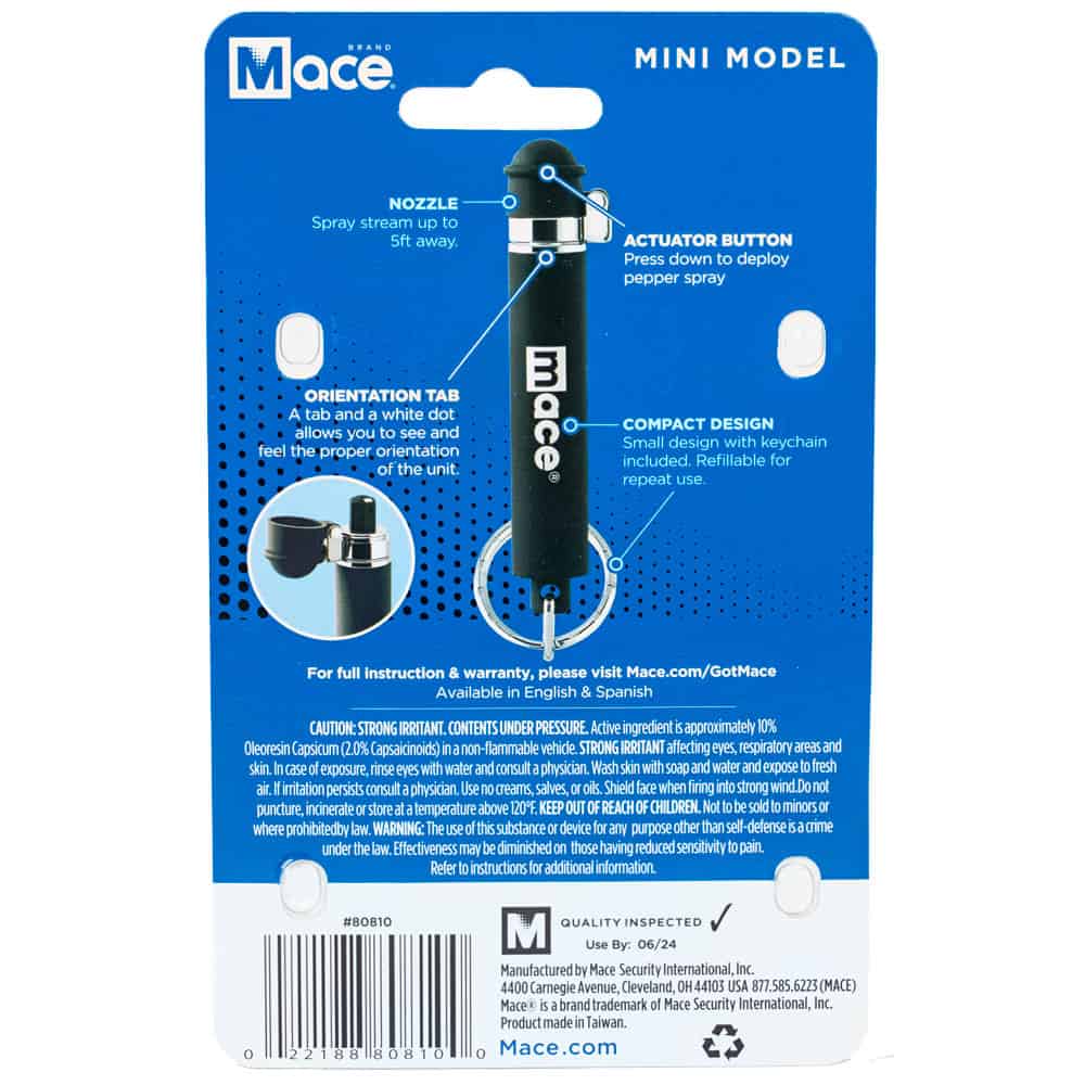 Practical Details: The unit measures 3.31 inches long by 0.5 inches wide and weighs just 0.2 lbs. It comes with a keyring attachment. The canister contains 0.14 oz (3 grams) of pepper spray formula. Here’s the smart part: when it’s empty or expired, you can buy a Mace Brand Refill Unit and pop in a new cartridge instead of replacing the whole thing. Mace provides a 1-year warranty on the canister and nozzle. The stream formula works in a wide temperature range, though extreme cold below 32°F may reduce pressure slightly.