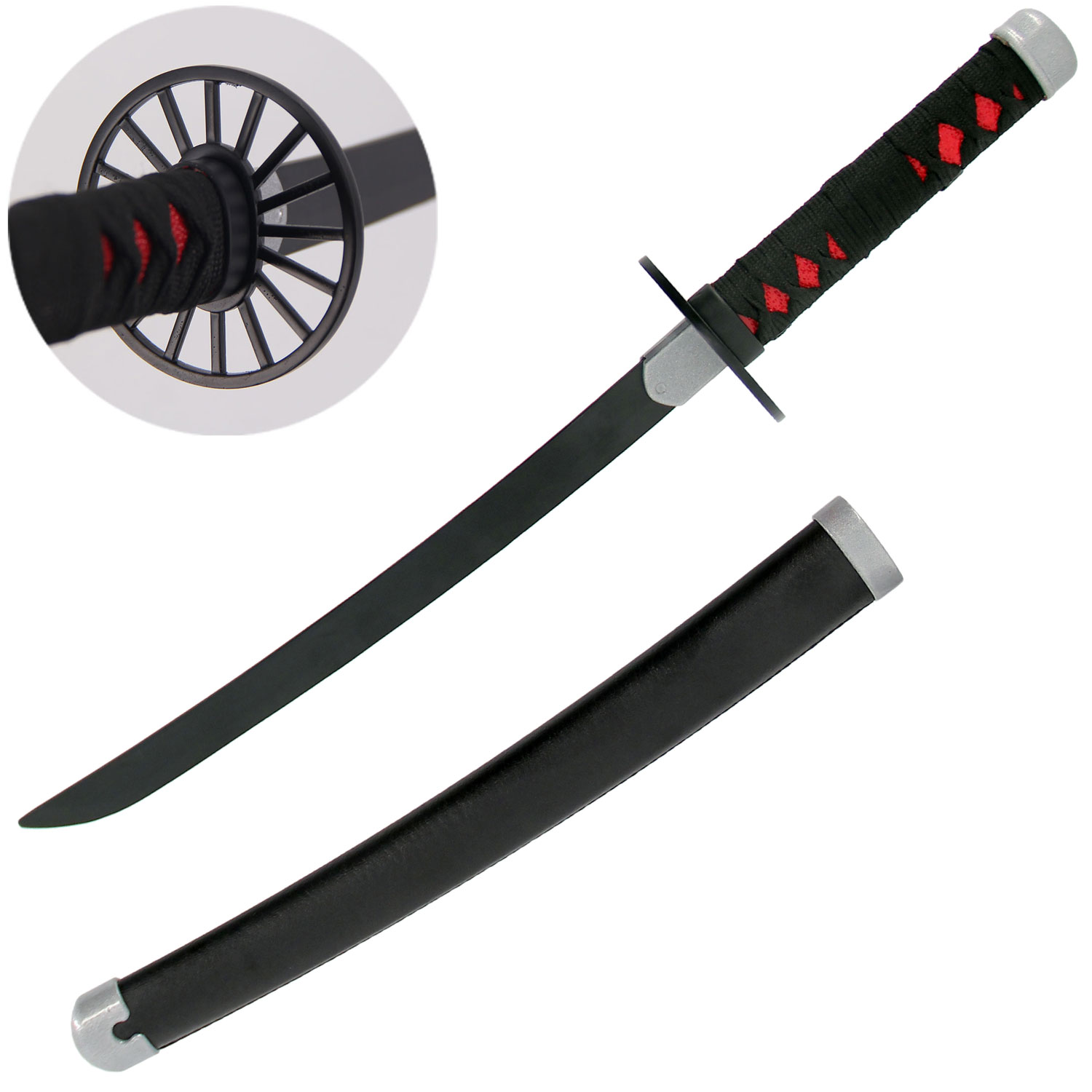 Our carefully crafted real sword is inspired by Tanjiro’s katana, including the stainless steel blade (toshin) and its iconic shaped guard (tsuba). This metal replica of the Tanjiro katana is 15.5 inches long and comes with a sheath (saya) and a ABS display stand. The blade is blunted and an ideal home decoration or cosplay photoshoot accessory.