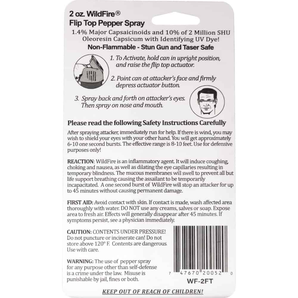 WildFire™ 4 oz 1.4% MC pepper spray stream is a favorite with security guards and gives great protection at home. The WILDFIRE? PEPPER SPRAY is hot, hot, hot. The Major Capsaicinoids are the true heat measure, WildFire has the hottest on the market at 1.4% Major Capsaicinoids. In addition to causing an attacker pain, The WildFire 10% oleoresin capsicum formula swells the mucous membranes, which makes breathing difficult, and swells the veins in the eyes, causing the eyes to close. It’s made from 2,000,000 SHU’s of raw pepper and these effects can last up to 45 minutes and cause no permanent damage. Has a UV identifying dye to help aid in the identification of an attacker. Get the leatherette holster with belt clip to carry on your belt.